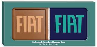 Milk or dark chocolate sourced directly from Italy, moulded and packaged in the USA. 3 packs are displayed in a 4" x 12" clear plastic box and the 2 packs in a 4" x 8" corrugate box that is the perfect medium for portraying any marketing message.